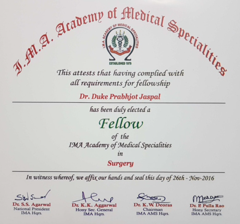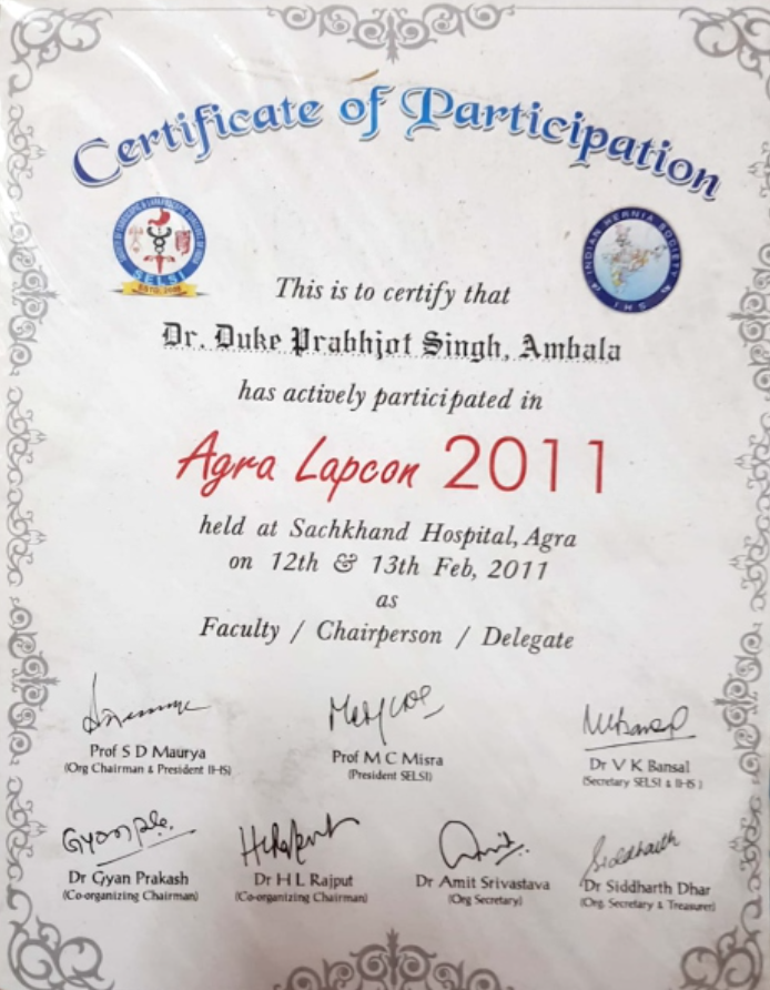 SENIOR RESIDENT IN MMIMSR AMBALA FROM 27/11/2010 TO 30/06/2012.